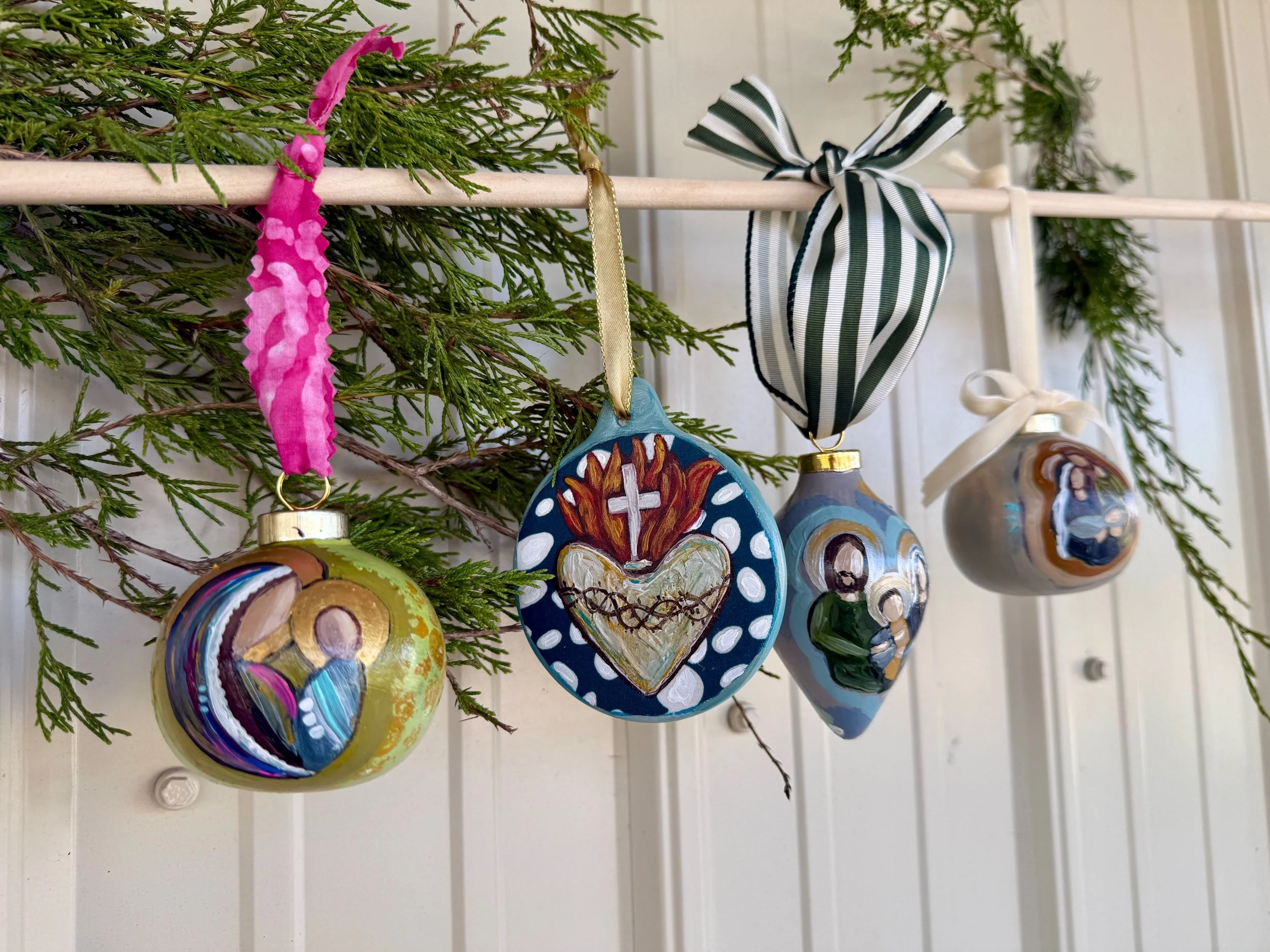 The 2025 Christmas collection includes more than 55 hand painted, ceramic ornaments,. and framed paintings featuring the Holy Family, and Mother Mary and Jesus, and the three wisemen.