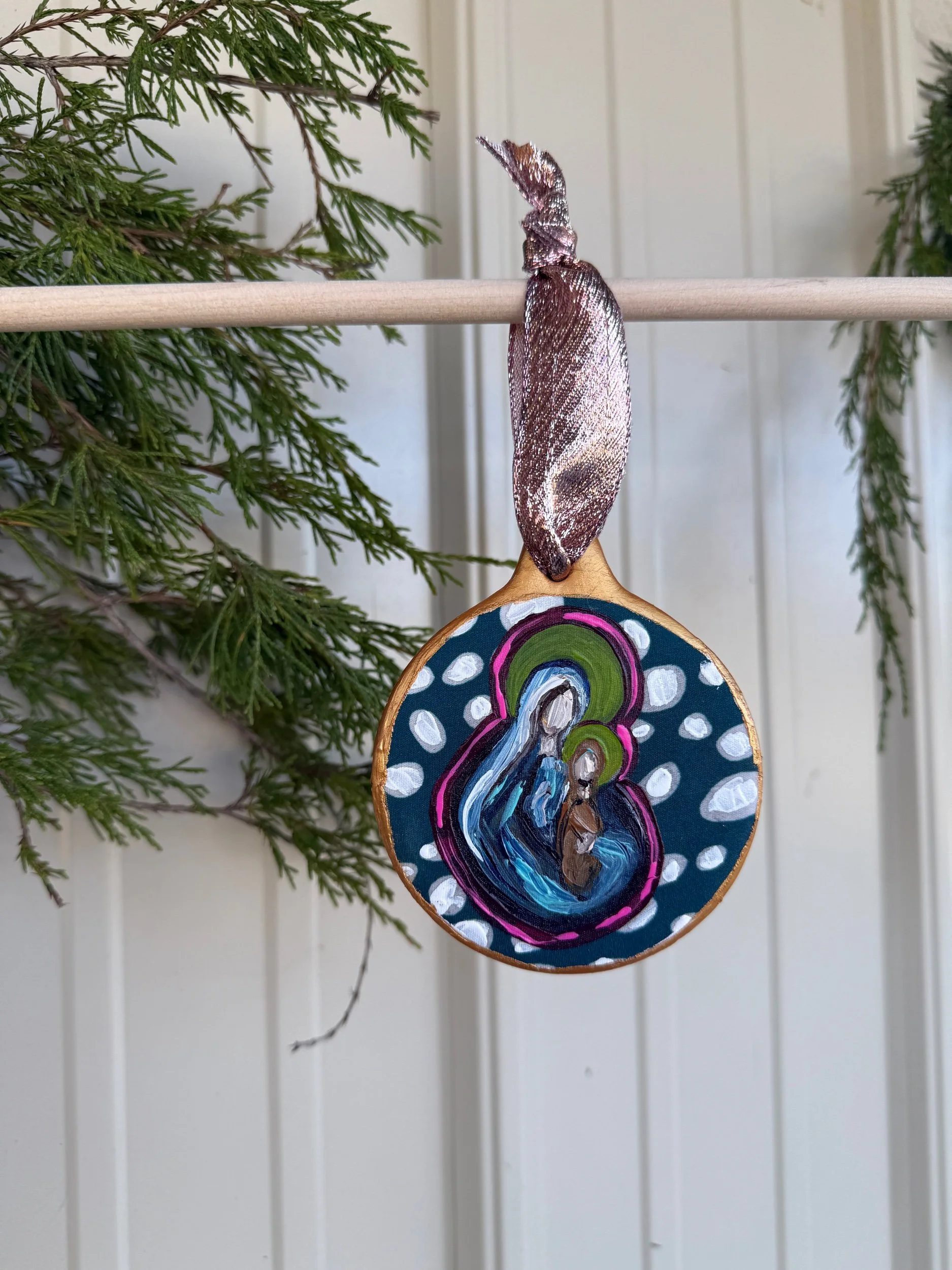 The 2025 Christmas collection includes more than 55 hand painted, ceramic ornaments,. and framed paintings featuring the Holy Family, and Mother Mary and Jesus, and the three wisemen.