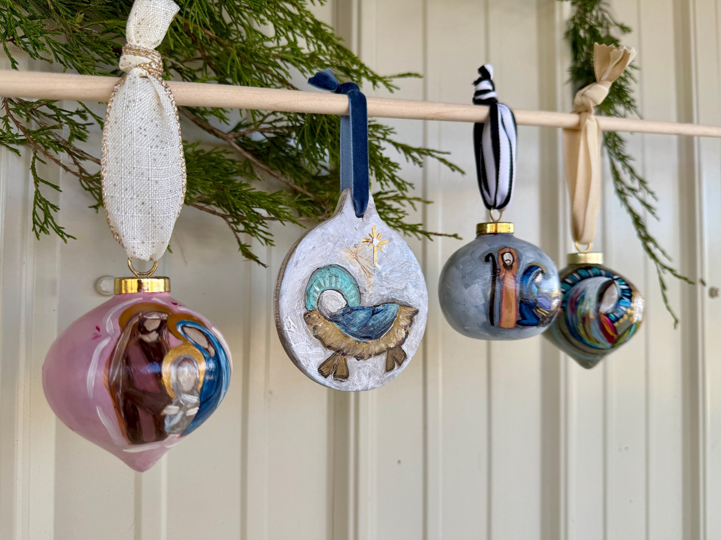 The 2025 Christmas collection includes more than 55 hand painted, ceramic ornaments,. and framed paintings featuring the Holy Family, and Mother Mary and Jesus, and the three wisemen.